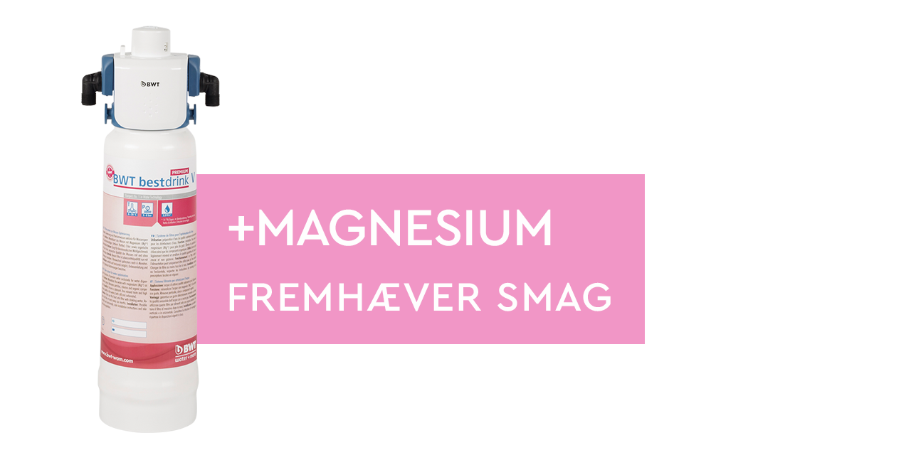 Vandkøleren filtrerer vandet med unik, patenteret magnesiumteknologi, der gør vandet særligt friskt og lækkert. Vandfiltret i vandkøleren tilføjer magnesium mineralet til drikkevandet, der optimerer smag og aroma. Samtidig reducerer en vandkøler smags- og lugtforstyrrende stoffer i vandet. Denne teknologi gør, at du altid har forfriskende vand lige ved hånden.