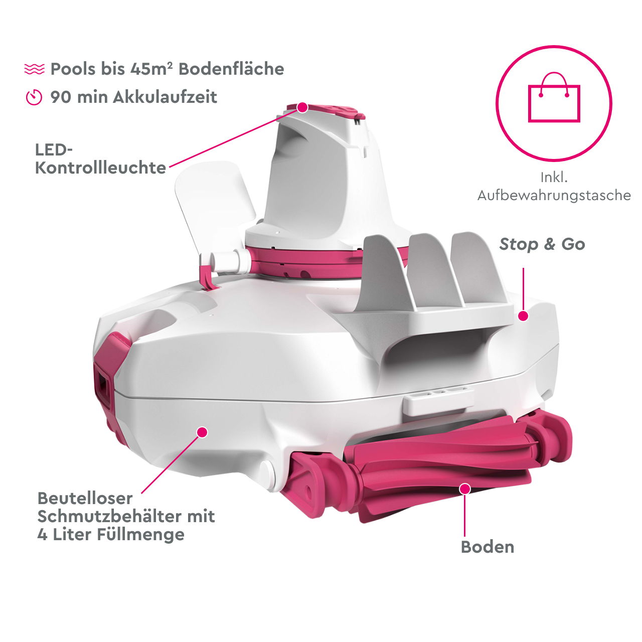 - LIEFERUMFANG: Poolroboter, Ladegerät und Aufbewahrungsbeutel mit 2 Jahren Garantie