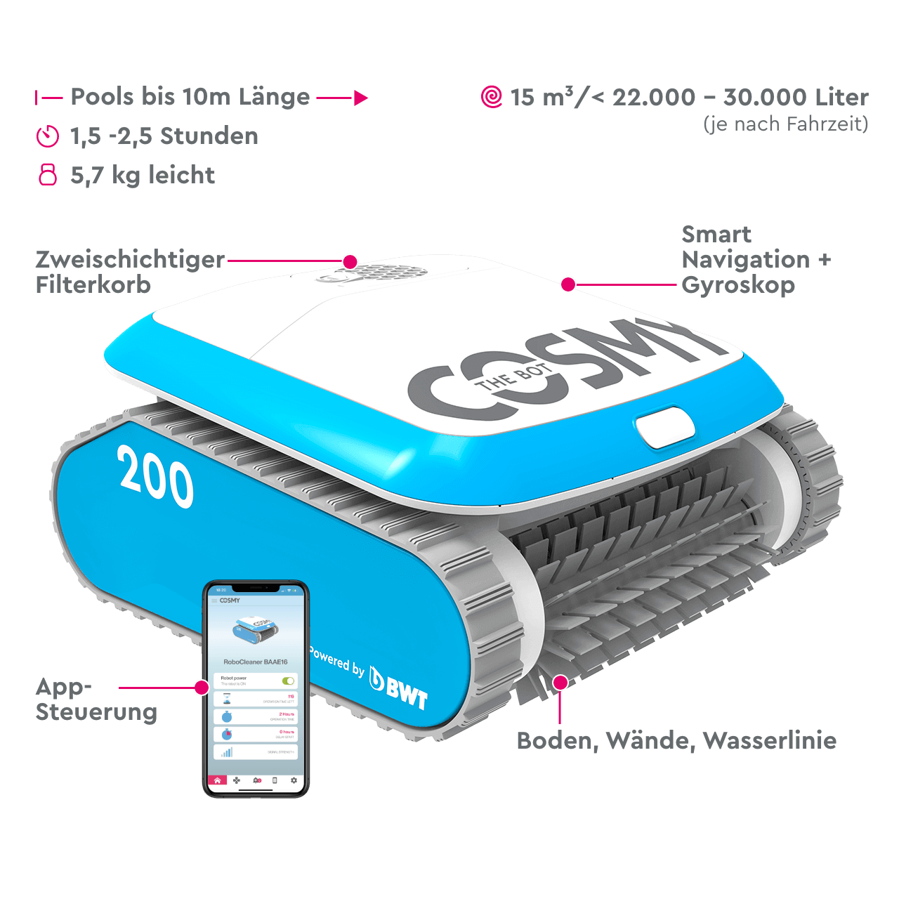 - KOMPAKT & FEDERLEICHT: Sein geringes Gewicht und seine kompakte Größe machen den COSMY 200 besonders benutzerfreundlich, so lässt er sich ganz einfach in und aus den Pool heben