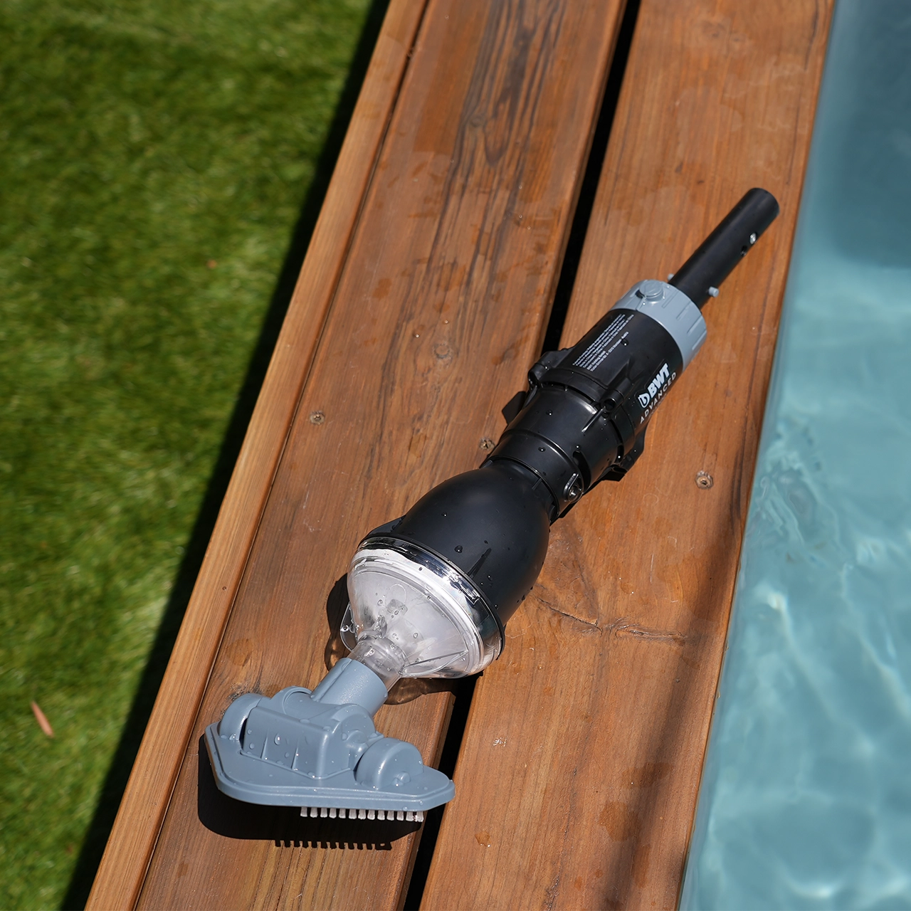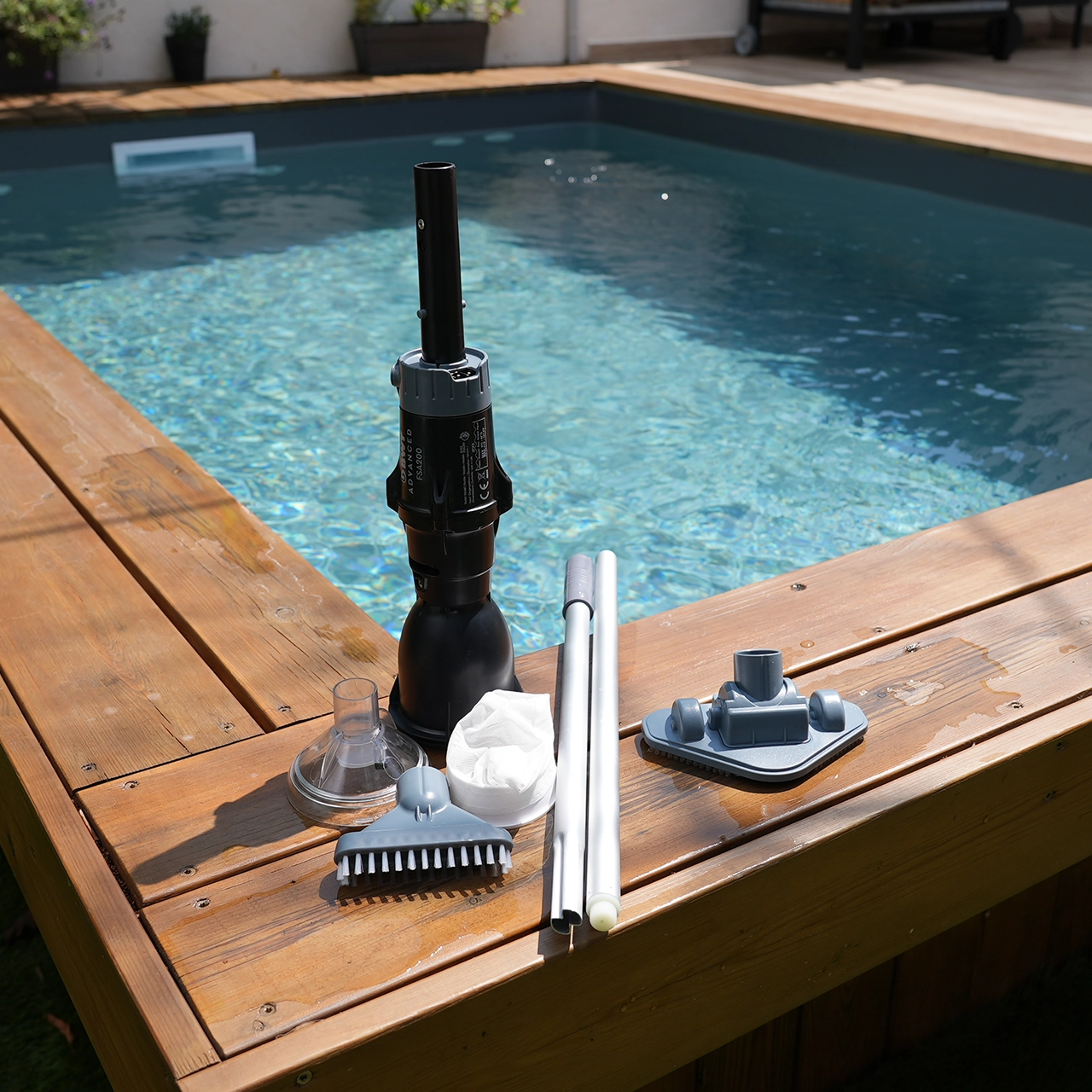 - LIEFERUMFANG: Poolsauger, Ladekabel, Stange und Flachbürsten-Aufsatz mit 2 Jahren Garantie