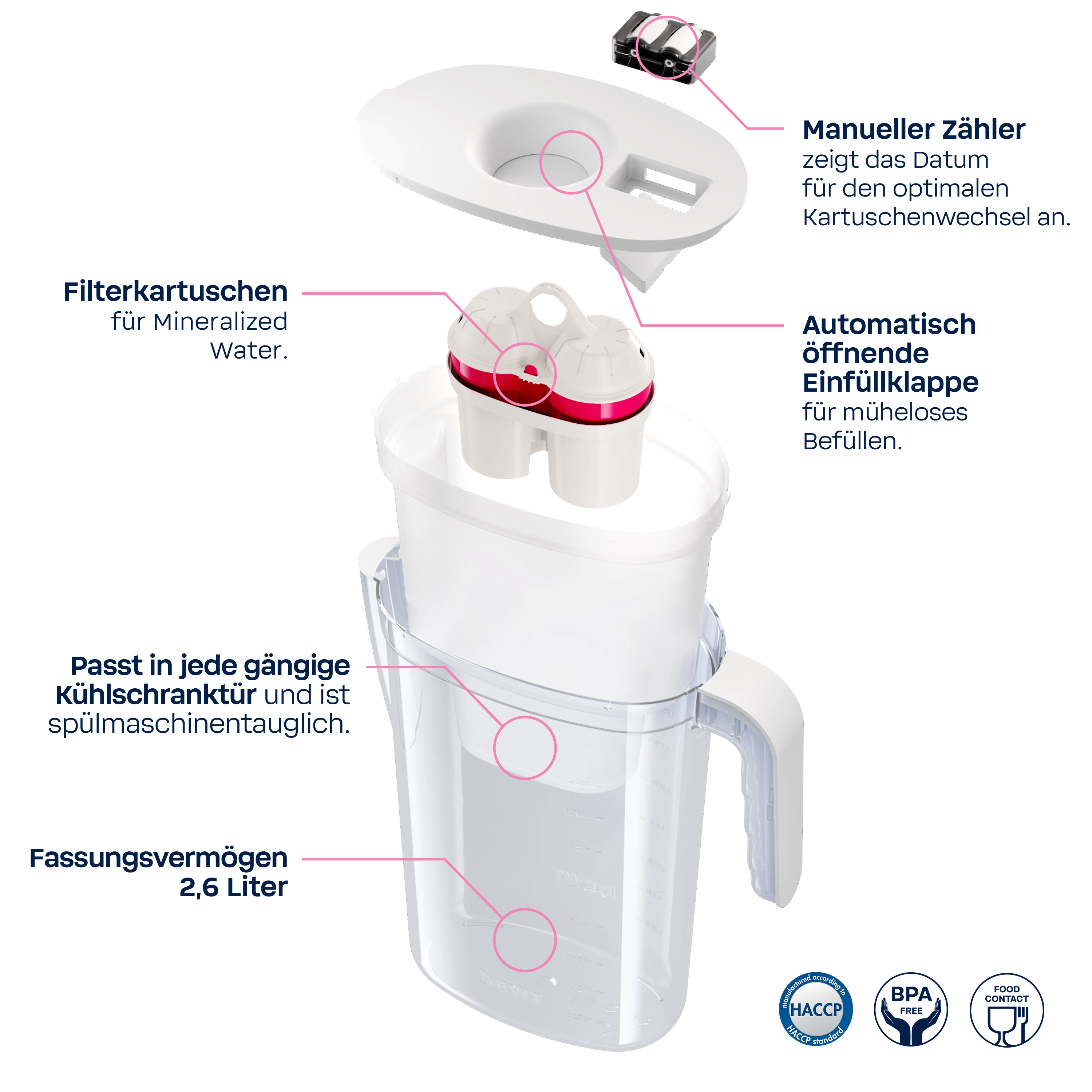- Lieferumfang: Tischwasserfilter Vida 2,6 l inkl. 1 Magnesium Mineralized Filterkartusche
