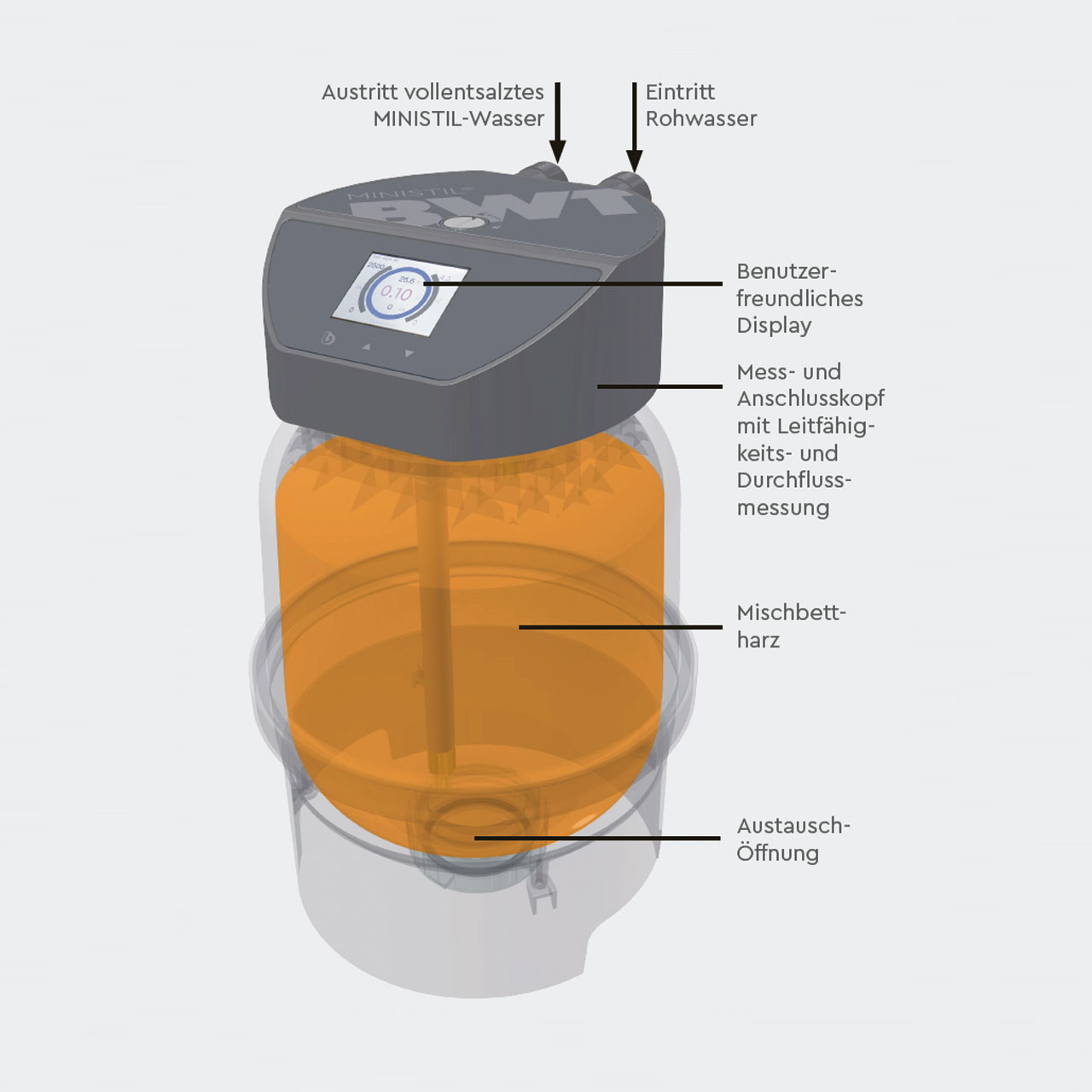 Dank der hochmodernen und hygienischen Regenerier- und Abfüllstation können wir unseren Kunden für alle MINISTIL Patronen einen eigenen Regenerierservice anbieten. Alle IonenaustauschPatronen arbeiten mit Harzen, die nicht durch ihre Betreiber am Einsatzort, sondern in einer zentralen Regenerierstation zusammen mit den Harzen mehrerer Kunden regeneriert werden. Diese Stationen erfüllen die ökonomischen und ökologischen Anforderungen an eine optimale Harzregeneration. Dank der hochentwickelten Regenerationstechnik und der nahtlosen Qualitätskontrolle unserer regenerierten Ionenaustauschharze erzeugen unsere Patronen aus jedem Trinkwasser dieselbe hohe Wasserqualität.