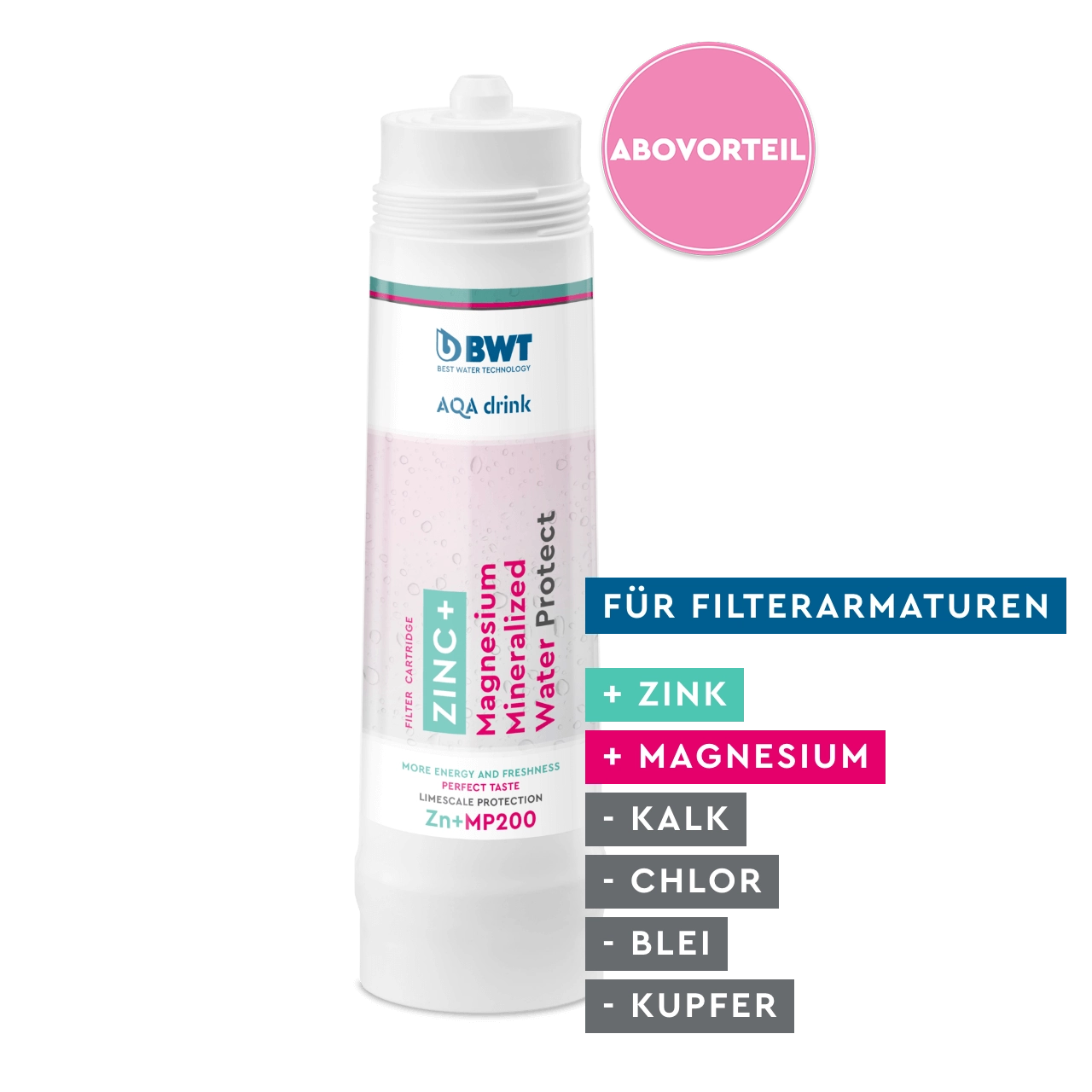 Durch die BWT Filterkartusche AQA drink ZINC + Magnesium Mineralized Water Protect erhält Ihr Leitungswasser die perfekte Kombination aus dem Mineral Magnesium und dem Spurenelement Zink. Magnesium hält Sie fit und vital – für einen aktiven Alltag und Ihre sportlichen Erlebnisse. Die Zugabe von Zink bringt Frische in Ihr Leitungswasser, unterstützt Ihr Immunsystem und hat einen positiven Effekt für Haut und Haare.