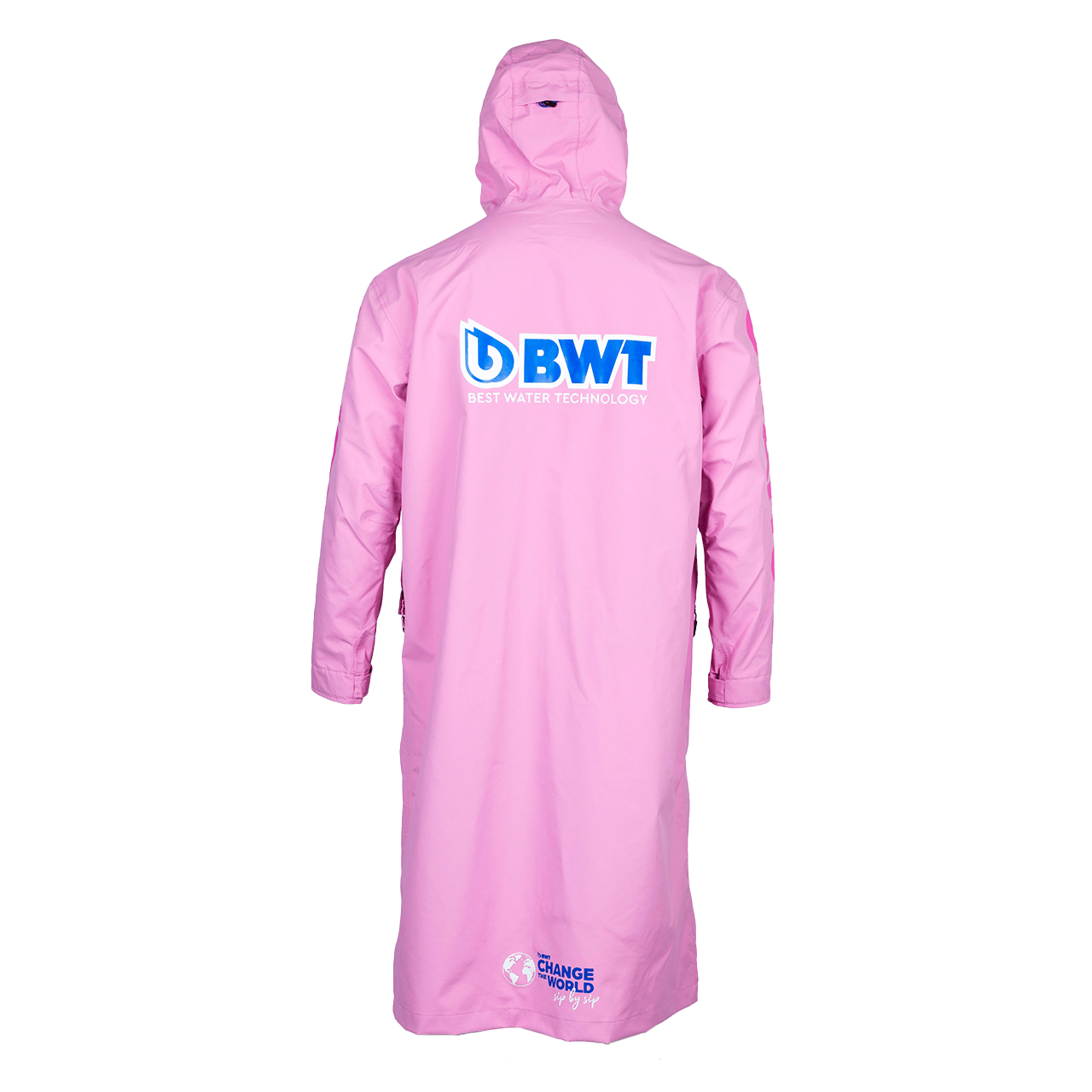 Das Besondere am BWT EverDry Sports Overcoat ist seine Mission: In typischem Pink signalisiert er stark gegen die Verwendung von Einwegplastikflaschen und unterstützt die Vision von BWT "Change the World - sip by sip". Als aktiver Sportler tragen Sie nicht nur einen hochwertigen Mantel, sondern setzen auch ein Zeichen für Umweltschutz und Nachhaltigkeit.