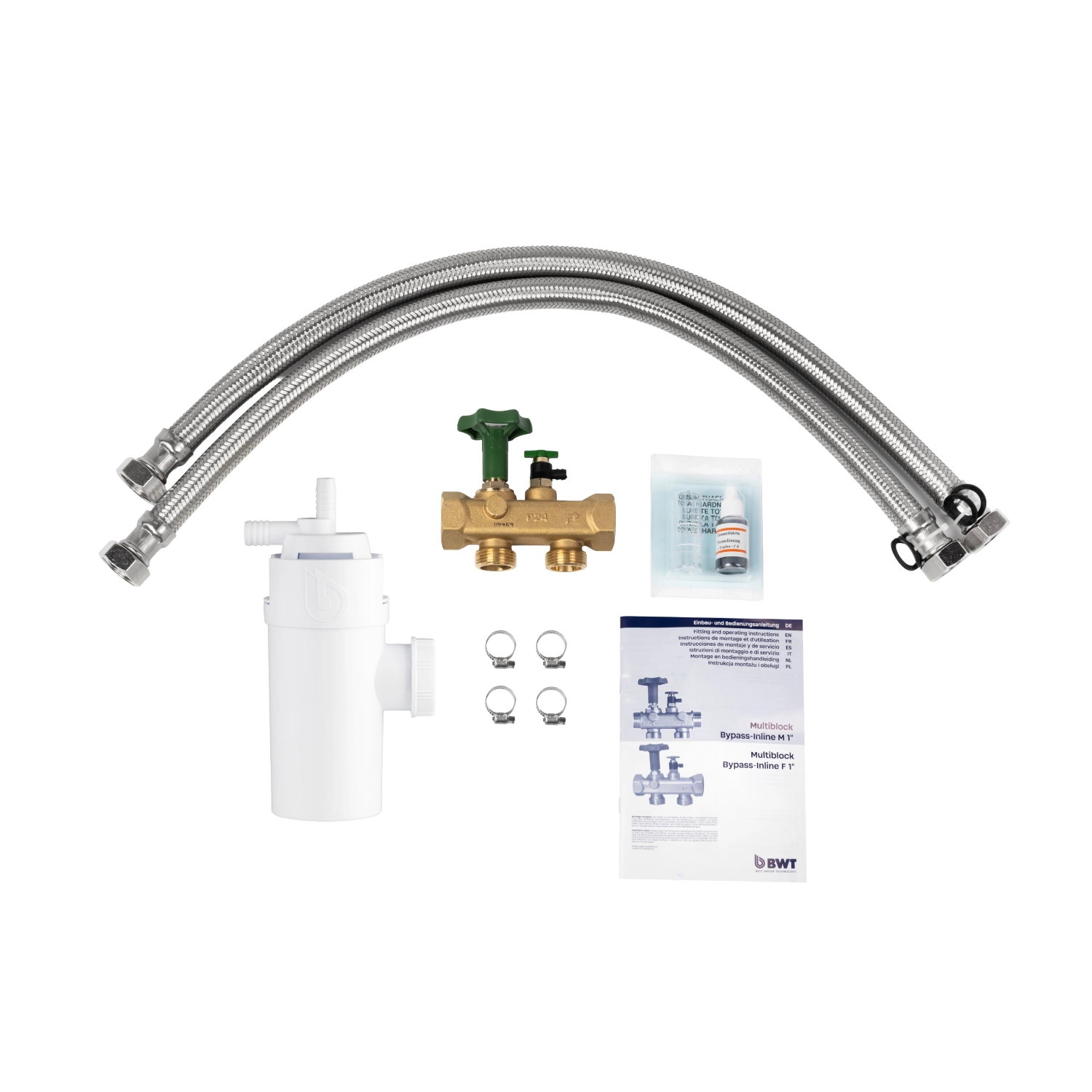 • Anschlussschläuche 1″–3/4″, 0,8 m (2 Stück)
