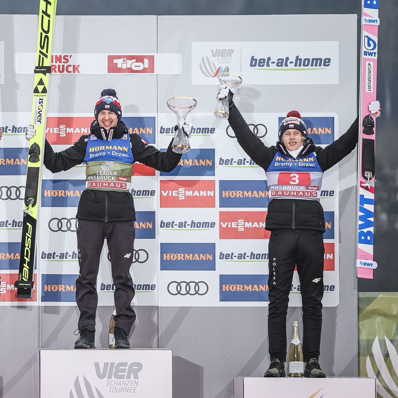 The four-hills tournament started with a moment of shock for the Polish team. Due to a positive COIVD-19 test of a team member, all Polish jumpers were excluded from participating in Oberstdorf. However, this early decision was withdrawn on the competition day, as the entire Polish team was tested negative. Thus, our BWT jumpers Dawid Kubacki (defending champion), Piotr Zyla and Maciej Kot were able to take part in the first competition.