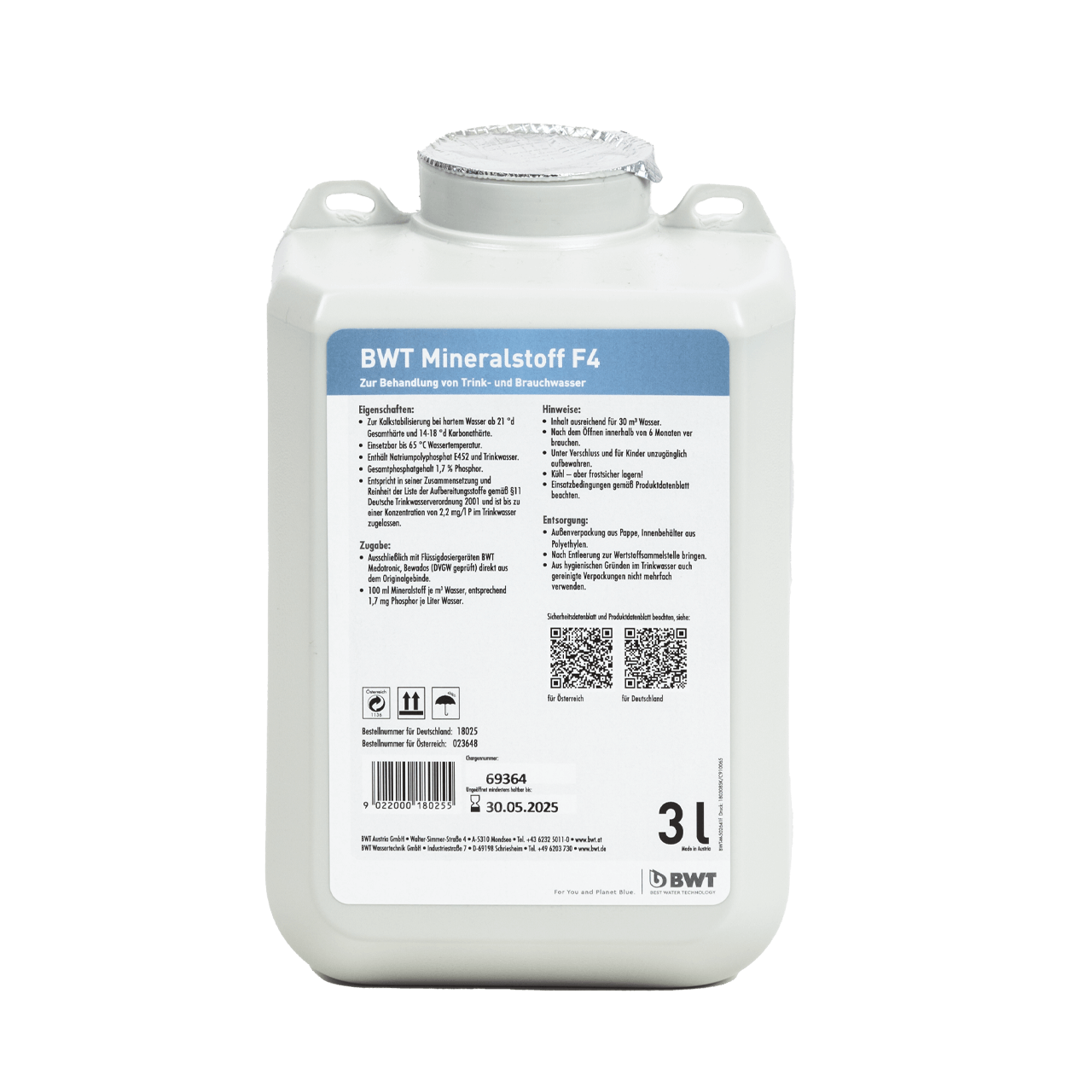 Mineral dosing agent for Bewados E3 & Plus 3 liquid dosing device, selection to suit your total and carbonate hardness