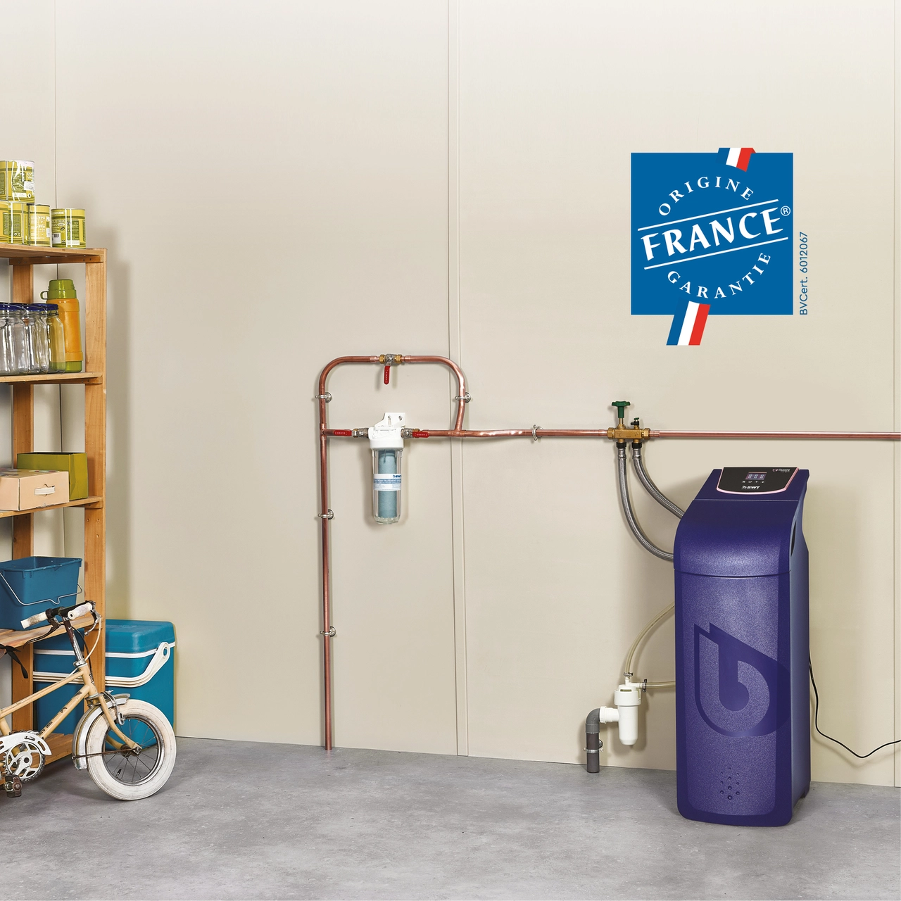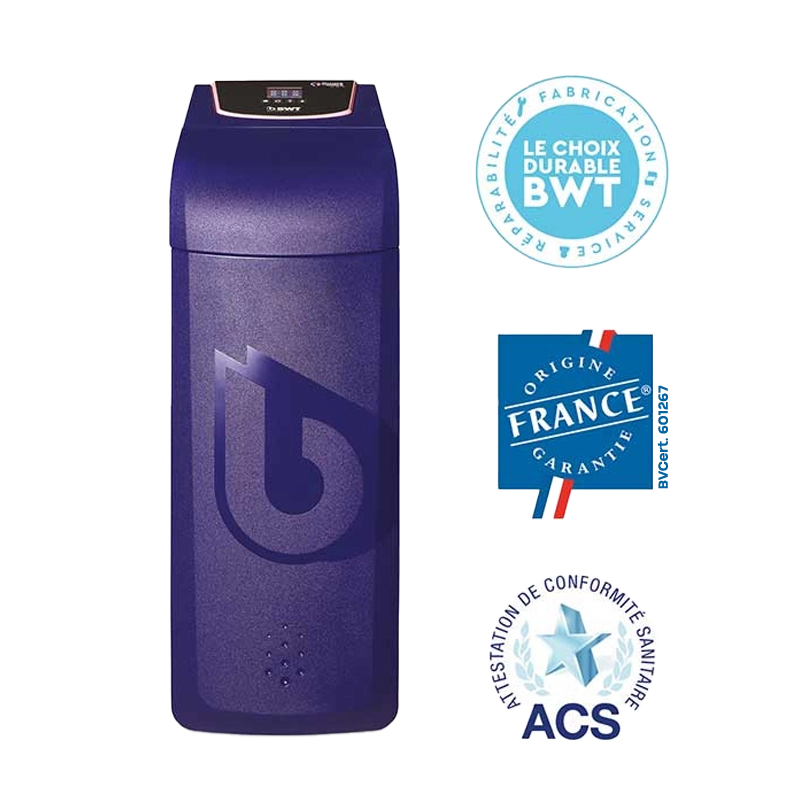 Certified French Origin, this state-of-the-art softener is designed to blend perfectly into its environment (>1 meter high) and provide the home with unparalleled soft water, with maximum safety and simplicity.