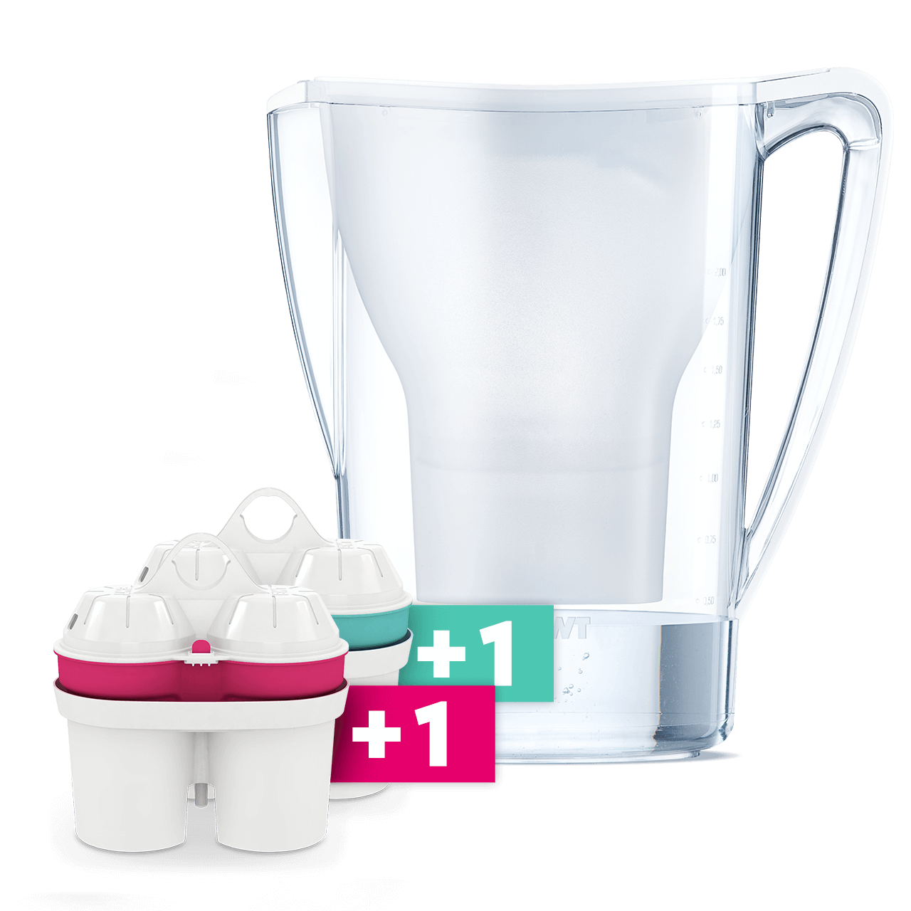 BWT's AQUAlizer Home water filter jug impresses with its attractive design and optimal ergonomic handling. The package includes a Magnesium Mineralized filter cartridge that strengthens your body's defences,  especially during the cold season.