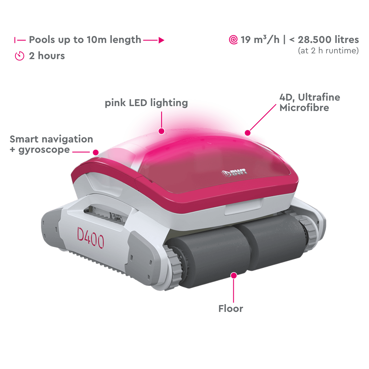 To make cleaning a real pleasure, this new robot lights up your pool with a lovely pulsating pink glow, in rhythm with the suction; effect guaranteed! These subtle light shows will magnify your pool and delight the friends invited to your lovely summer receptions.