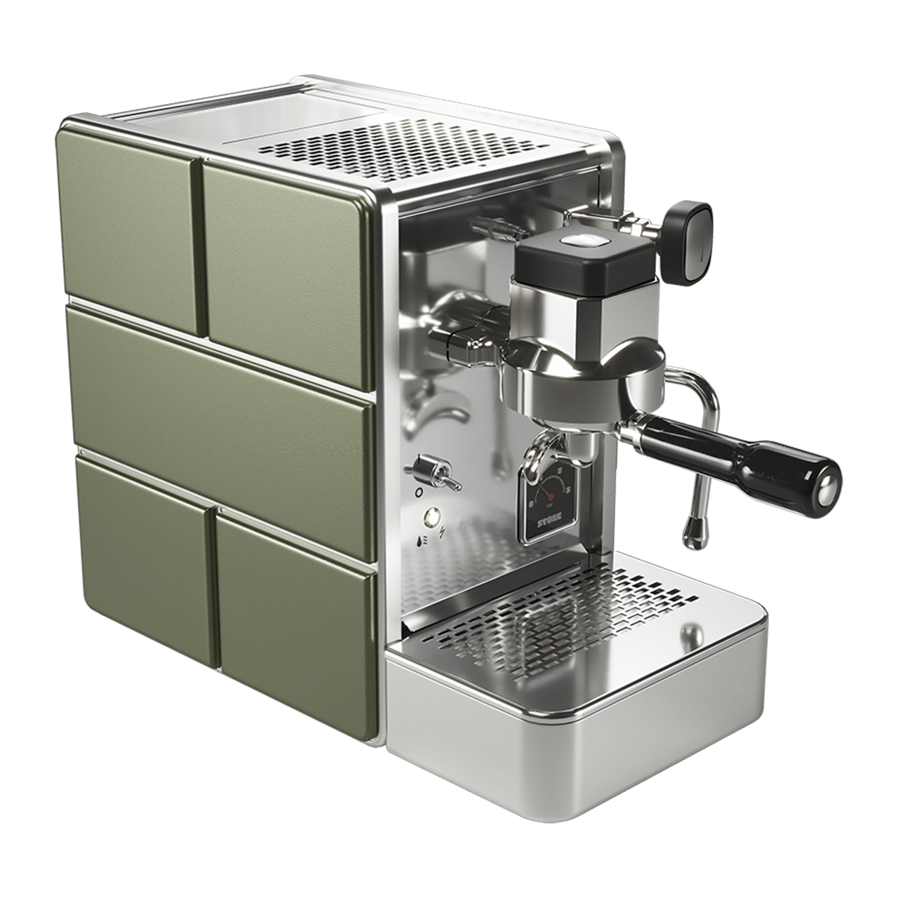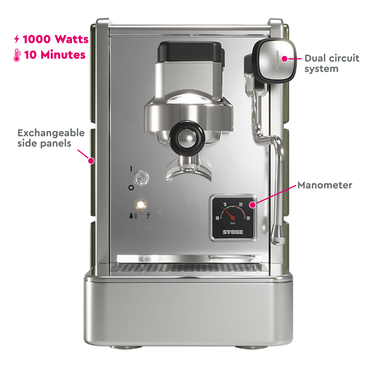 - COMPACT: Space-saving espresso machine made of high-quality stainless steel with olive side panels