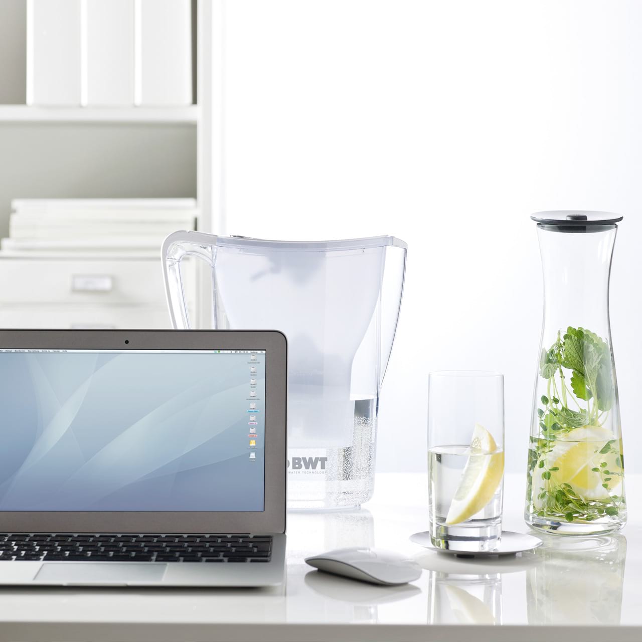 dispensador AQUA drink de BWT, disponible como una unidad independiente y en una versión de sobremesa, refresca en la oficina y, en eventos, pero también en instalaciones públicas. Dichos dispensadores de agua potable obtienen el agua directamente del grifo y, con solo pulsar un botón, proporcionan agua mineralizada con magnesio (fría, con gas o sin gas) dentro o fuera de casa, en oficinas, gimnasios, hoteles y otros muchos lugares.