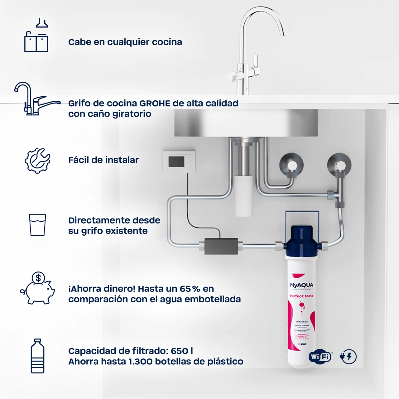 Compatible con Todos los Cartuchos de Filtro de la Serie AQA Drink