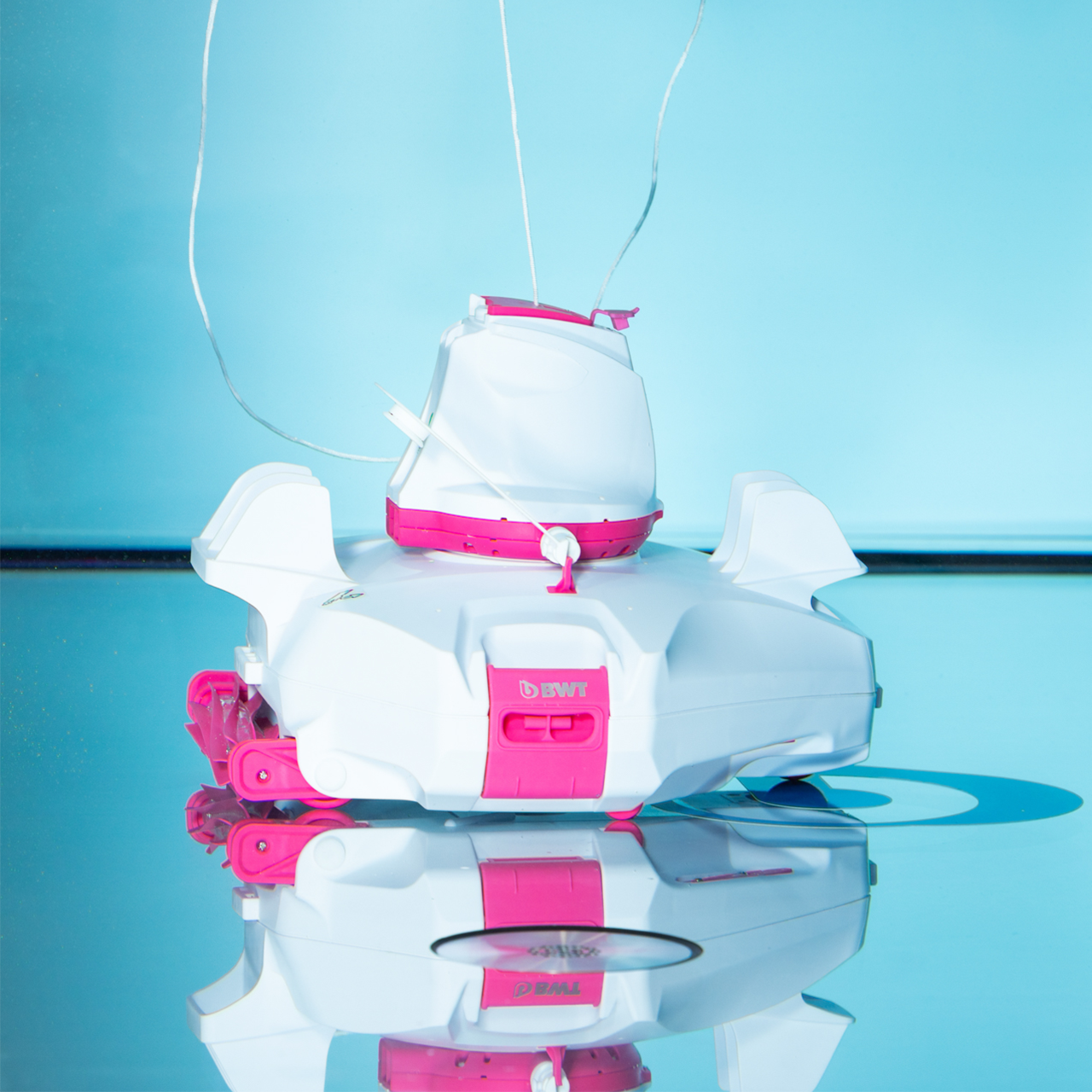 El aspirador de piscinas BWT también puede limpiarse con una solución de agua jabonosa para la suciedad gruesa. Después, el aparato debe ser aclarado correctamente para evitar que el jabón entre en la piscina (Atención: ¡formación de espuma en la piscina!).