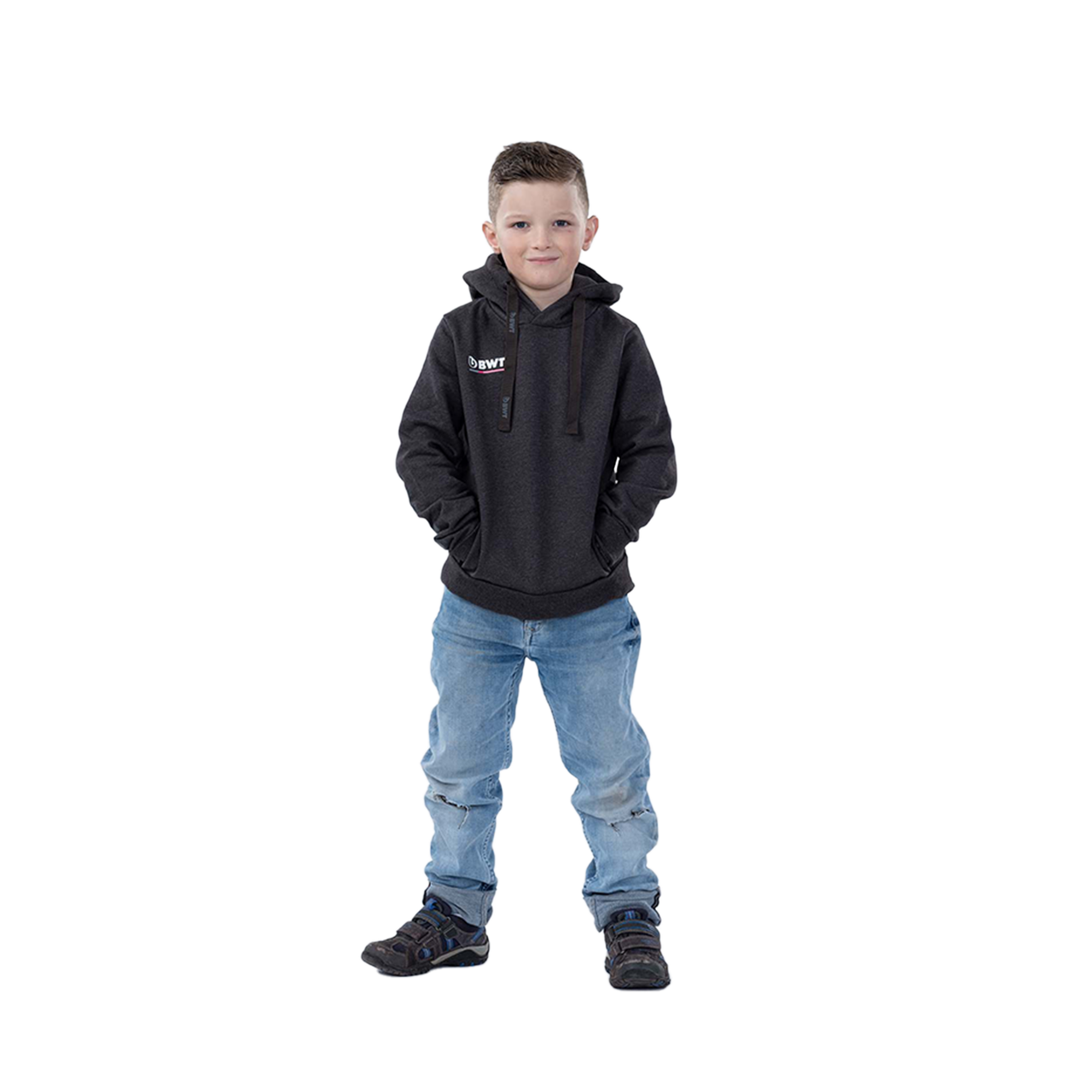 Cómoda sudadera con capucha para niños en gris fresco con un agradable ajuste