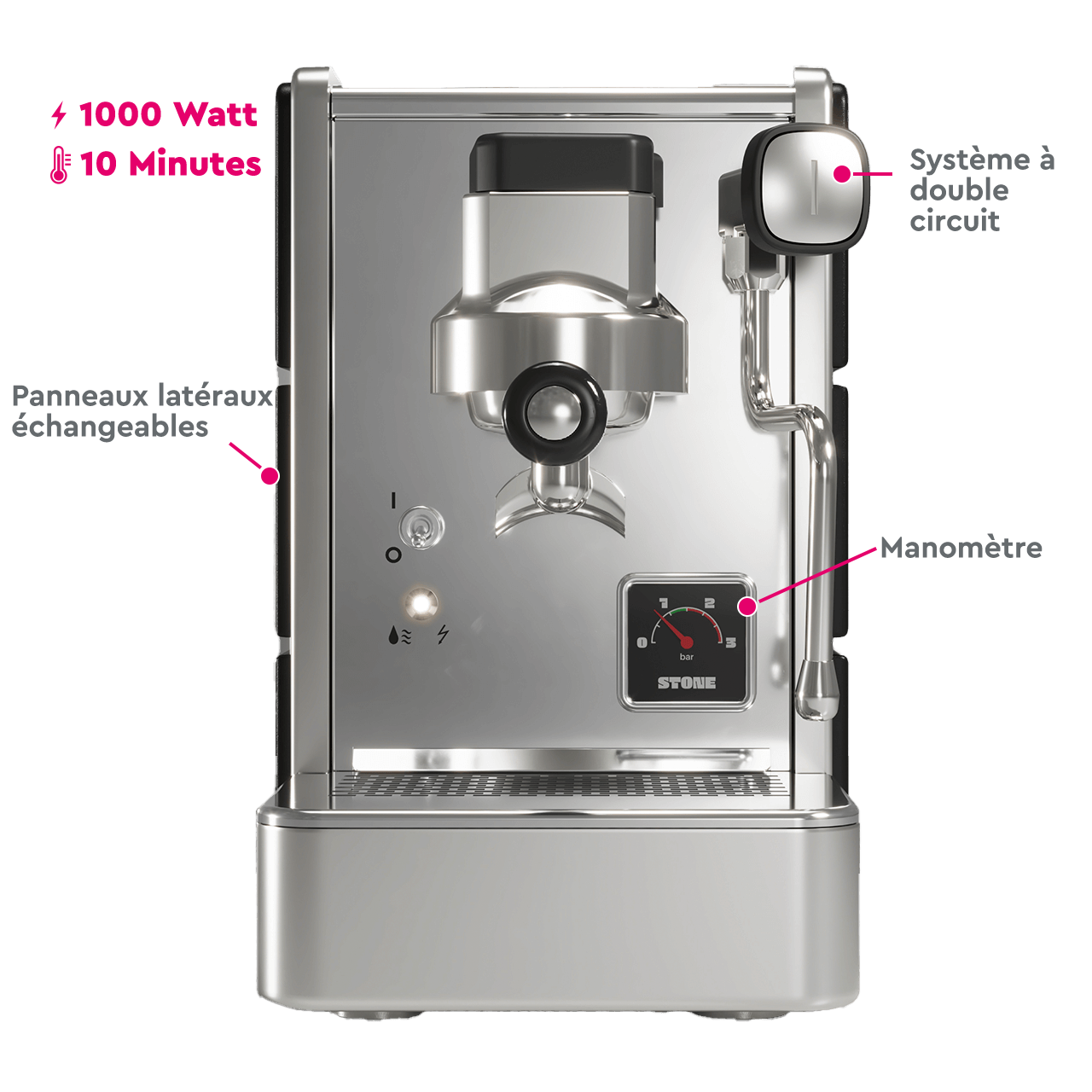 Et grâce au système innovant de Quick-Coupling, il est particulièrement facile et rapide de remplacer les dalles. Que vous déménagiez ou que vous changiez votre décoration, la machine à expresso Stone peut s'adapter à son environnement en un clin d'œil.