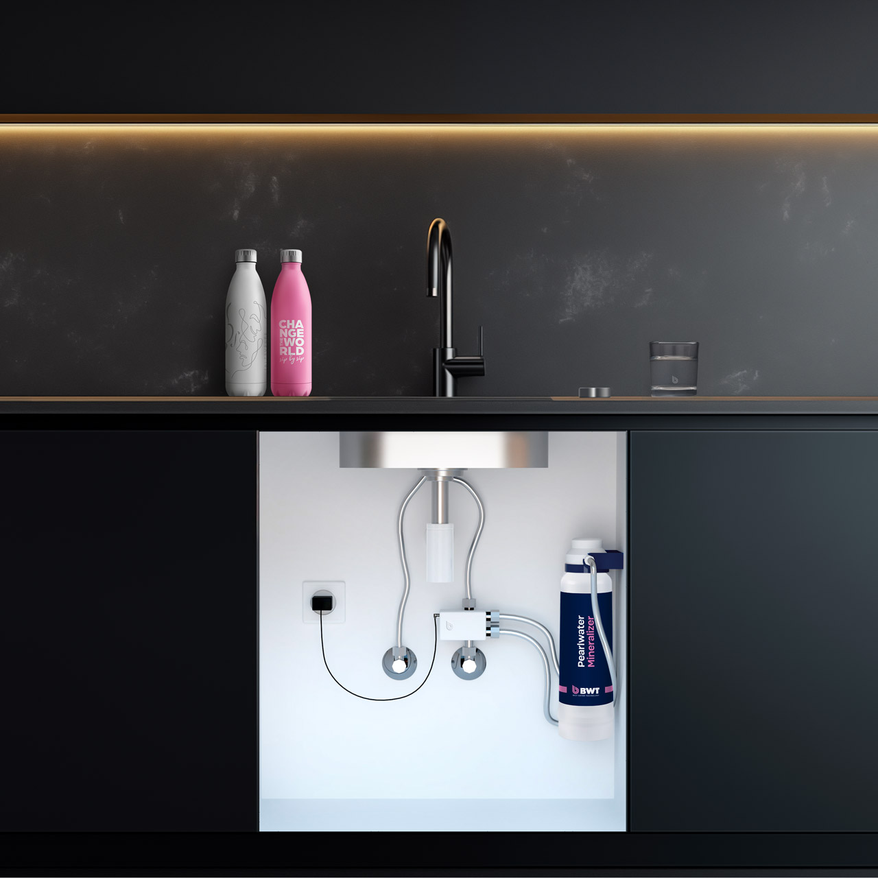 Tous les systèmes d’adoucissement BWT sont toujours fournis avec le BWT PearlWater Mineralizer Kitchen-Set.
