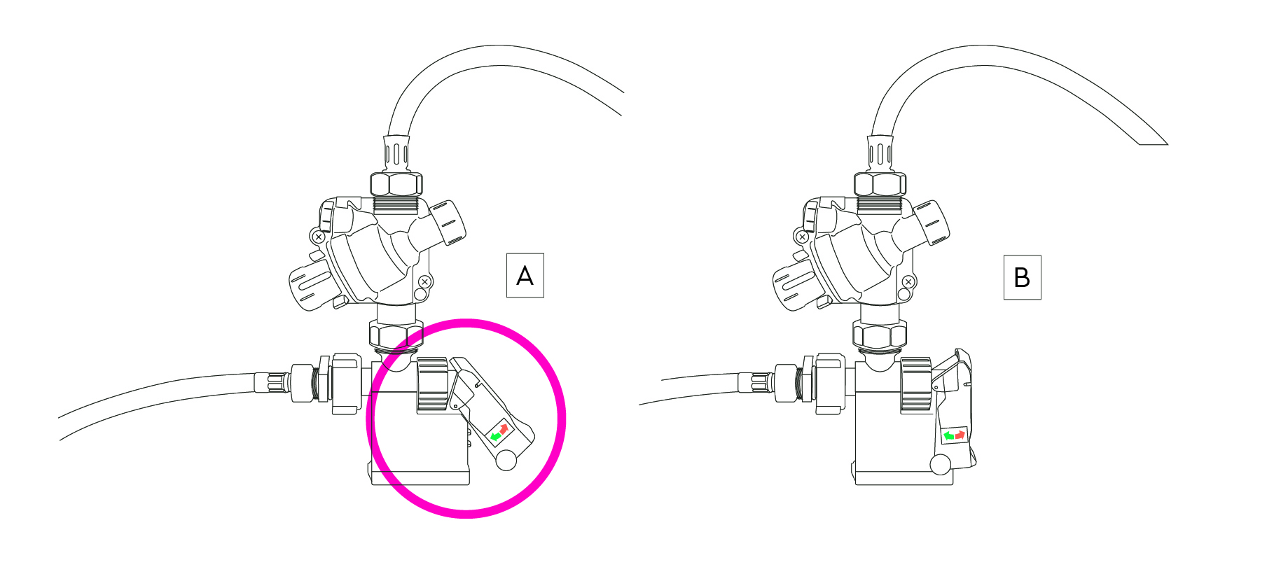 Eau pas assez pétillante : L’indicateur B donne des informations sur l’intensité de la gazéification. Si l’aiguille est en dessous de 3 bars, il faut augmenter la pression. Dans les deux cas, veuillez contacter le service clientèle de BWT.