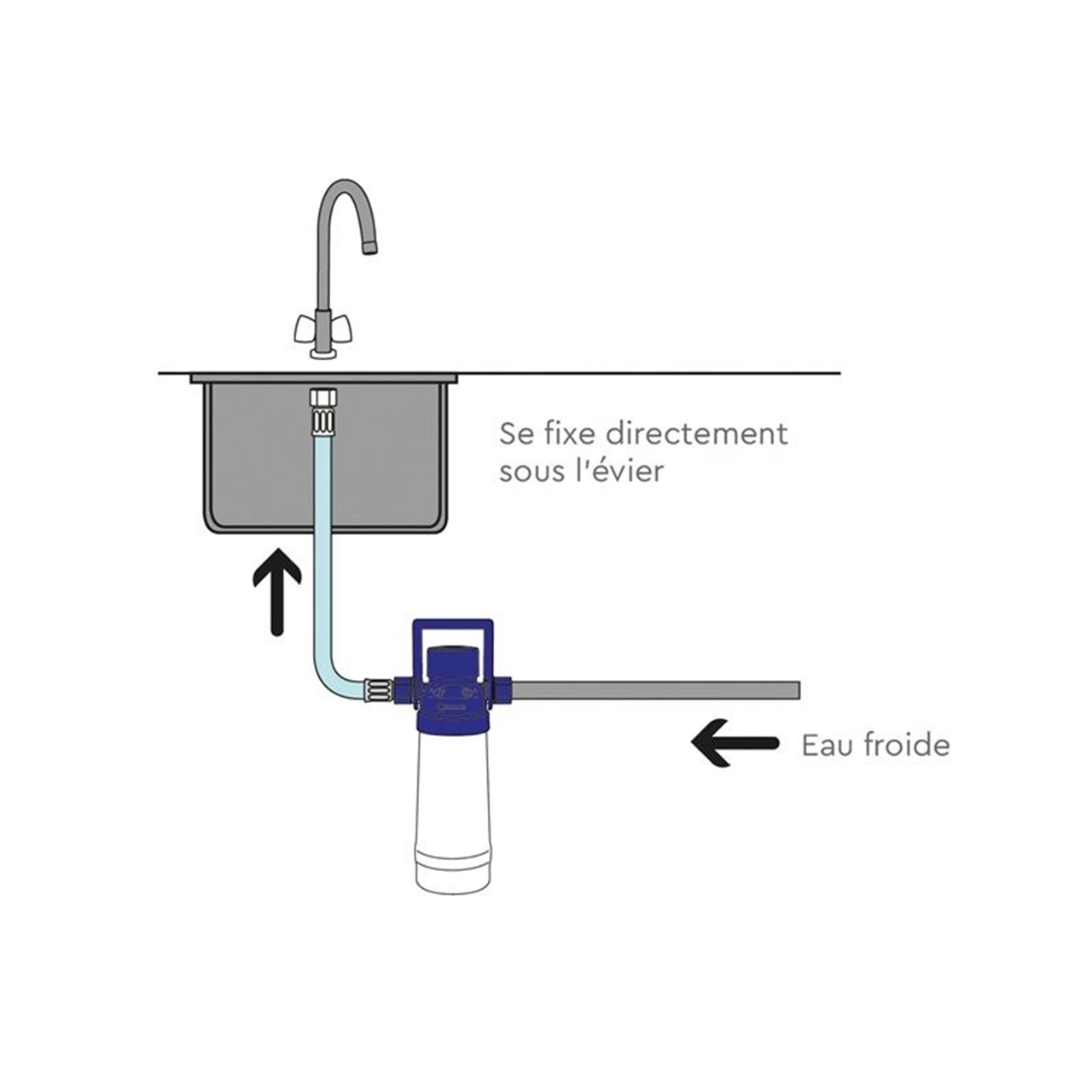 En plus, le filtre sous évier est conçu pour filtrer toute l’eau froide de la cuisine : il ne nécessite pas de robinet déporté et s’adapte à tous les robinets du marché.