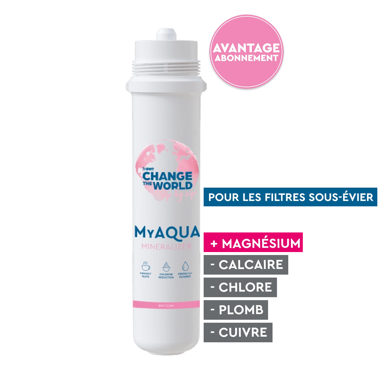Les cartouches filtrantes brevetées de BWT réduisent la teneur en calcaire de votre eau et offrent une protection efficace contre le tartre, surtout dans les régions où l'eau est très dure. Mais les filtres révolutionnaires de BWT ne servent pas uniquement de filtres anticalcaire : ils enrichissent également votre eau du robinet en minéraux précieux comme le magnésium, le zinc ou le silicium. Le résultat est toujours le même : une eau filtrée, minéralisée et au goût unique.