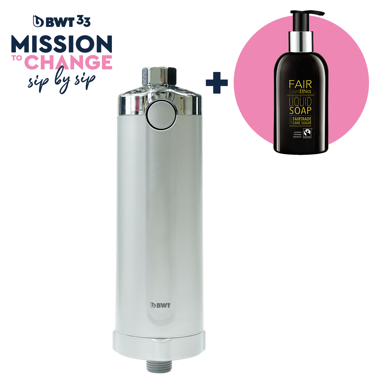 Soins pour la douche : protège le verre, la douche, la baignoire, la robinetterie | Soins pour le corps : savon liquide + lotion corporelle FAIR CosmEthics