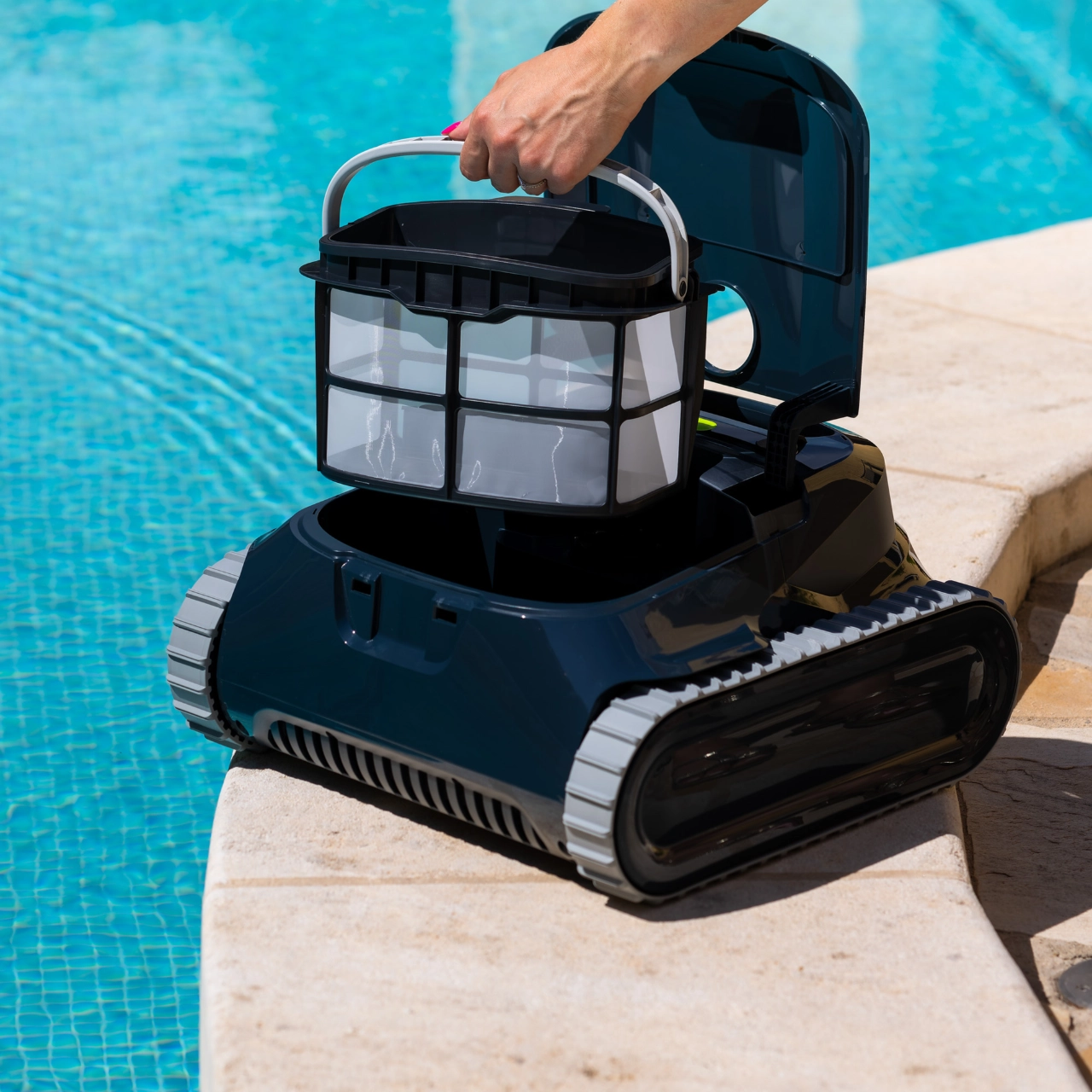 Avec un poids de seulement 7,9 kg, une fonction d’auto-stationnement au bord du bassin et un système de vidange rapide, le robot se retire et se range sans effort.