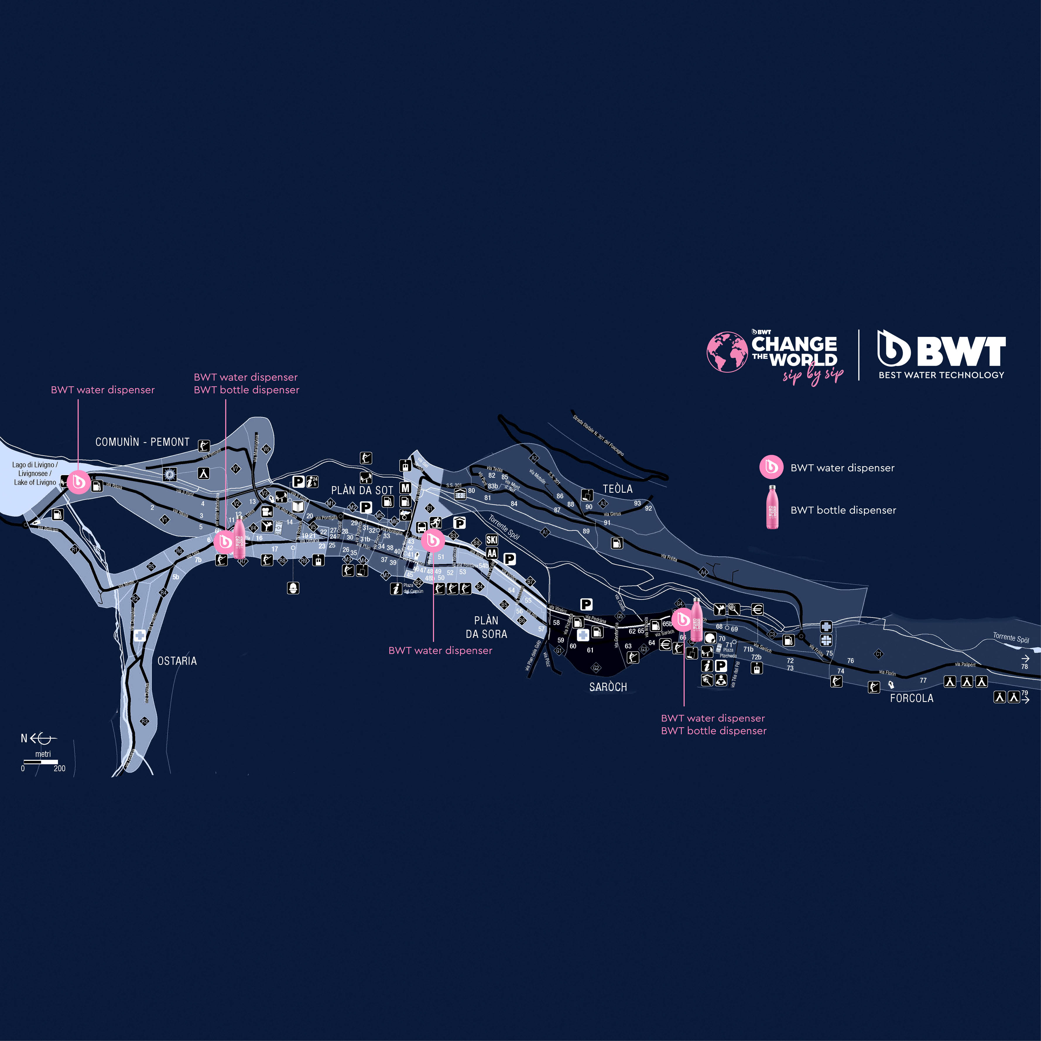 Intraprendi un viaggio nell'eccellenza dell'idratazione a Livigno. Esplora le nostre BWT water stations in città. Sfruttando le tecnologie brevettate BWT, filtriamo e miglioriamo l’acqua di rete arricchendola con minerali fondamentali come il magnesio, lo zinco, e silicio. Questo assicura un’acqua sicura, locale e mineralizzata al meglio da BWT, contribuendo alla riduzione dei rifiuti plastica e delle emissioni di CO2. Dissetati in modo responsabile riempiendo la tua borraccia quante volte vuoi!