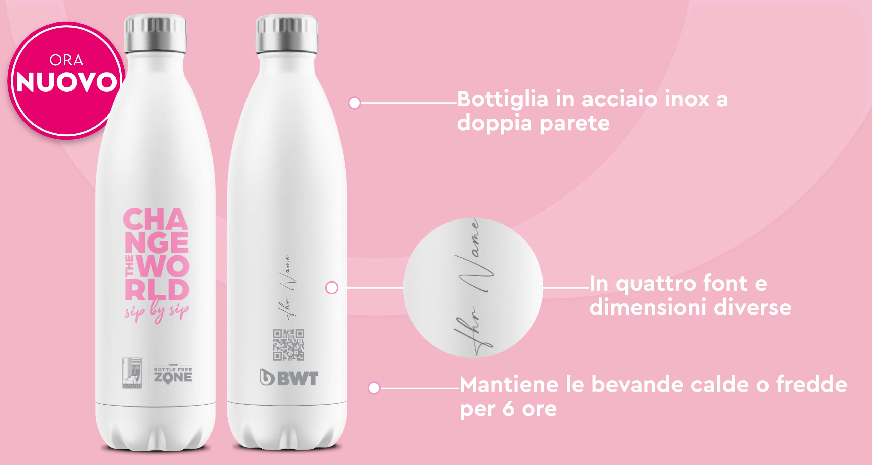 - Il tuo nome o un testo personalizzato sull’esclusiva BWT Climate Bottle