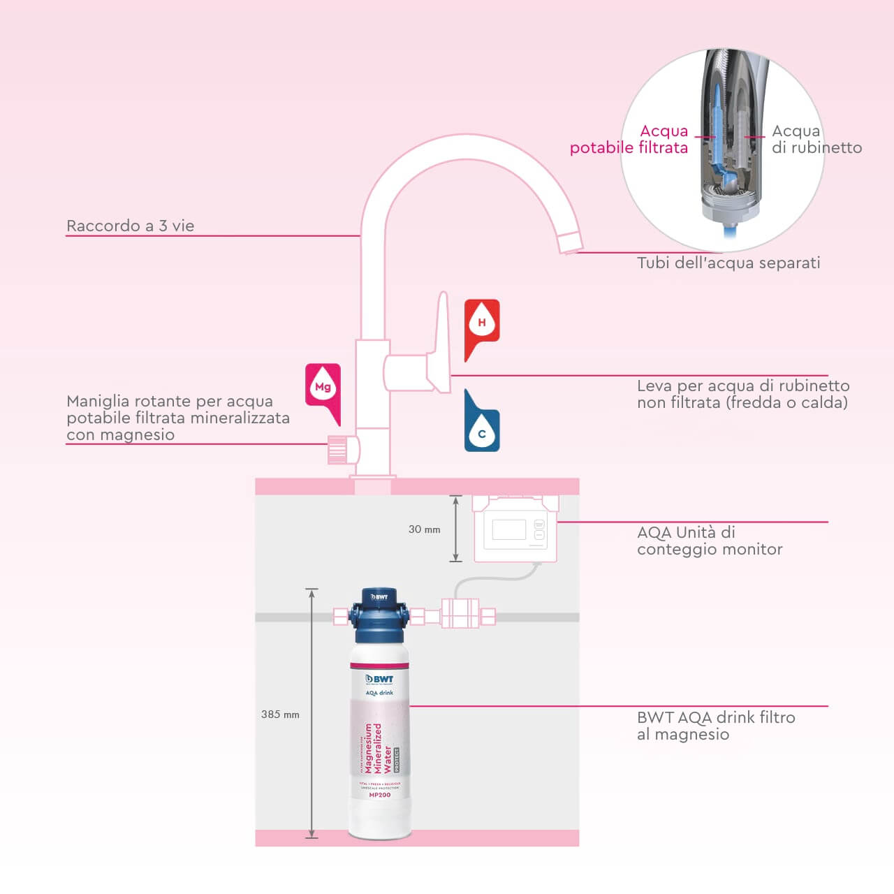 - COMPATIBILITÀ: adatto solo alla serie BWT "AQA drink" (non adatto per BWT Bestmax o sistemi di terzi)