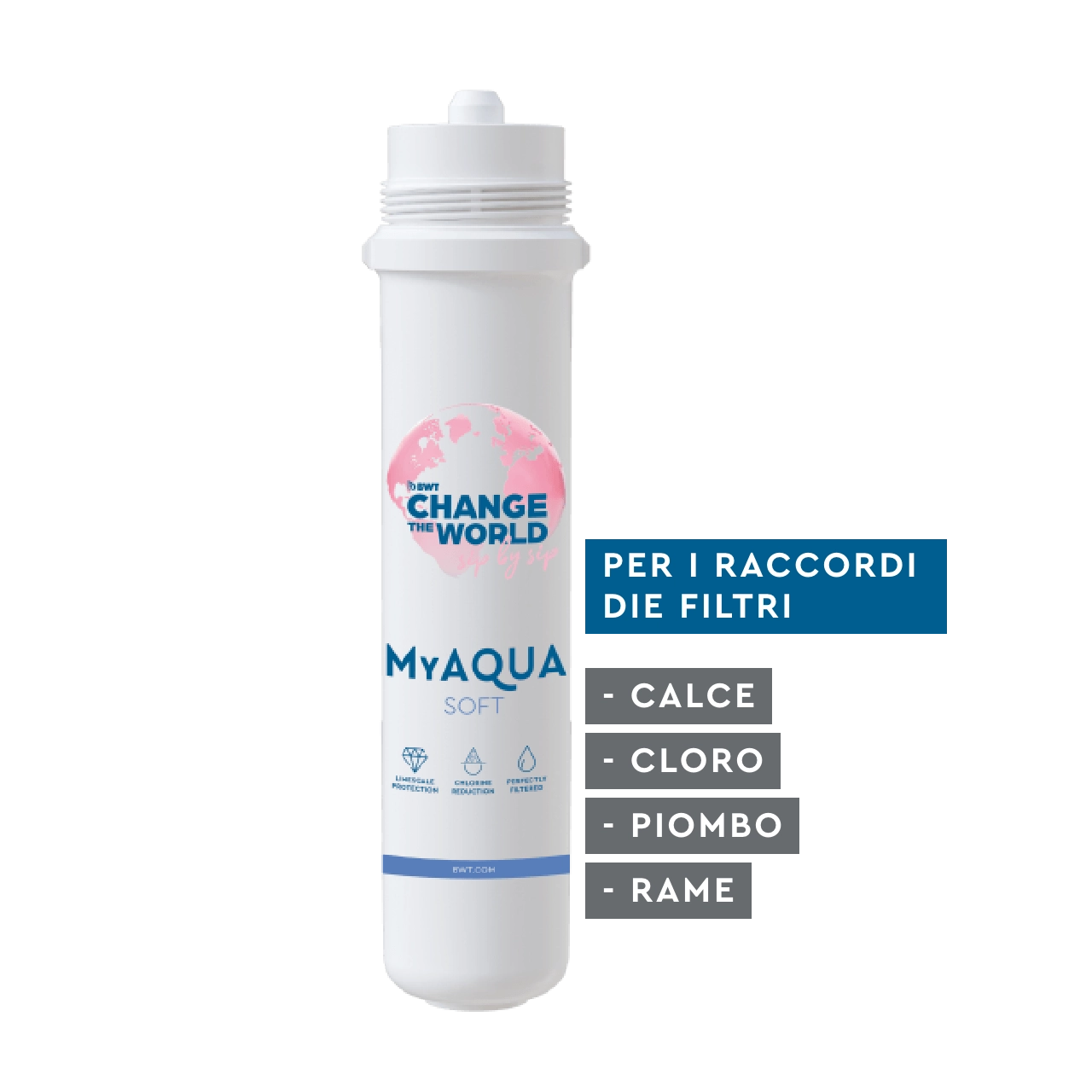Proteggi efficacemente i tuoi elettrodomestici con la cartuccia MyAQUA Soft e goditi l'acqua più pura per preparare tè e caffè grazie all'efficace protezione anticalcare.