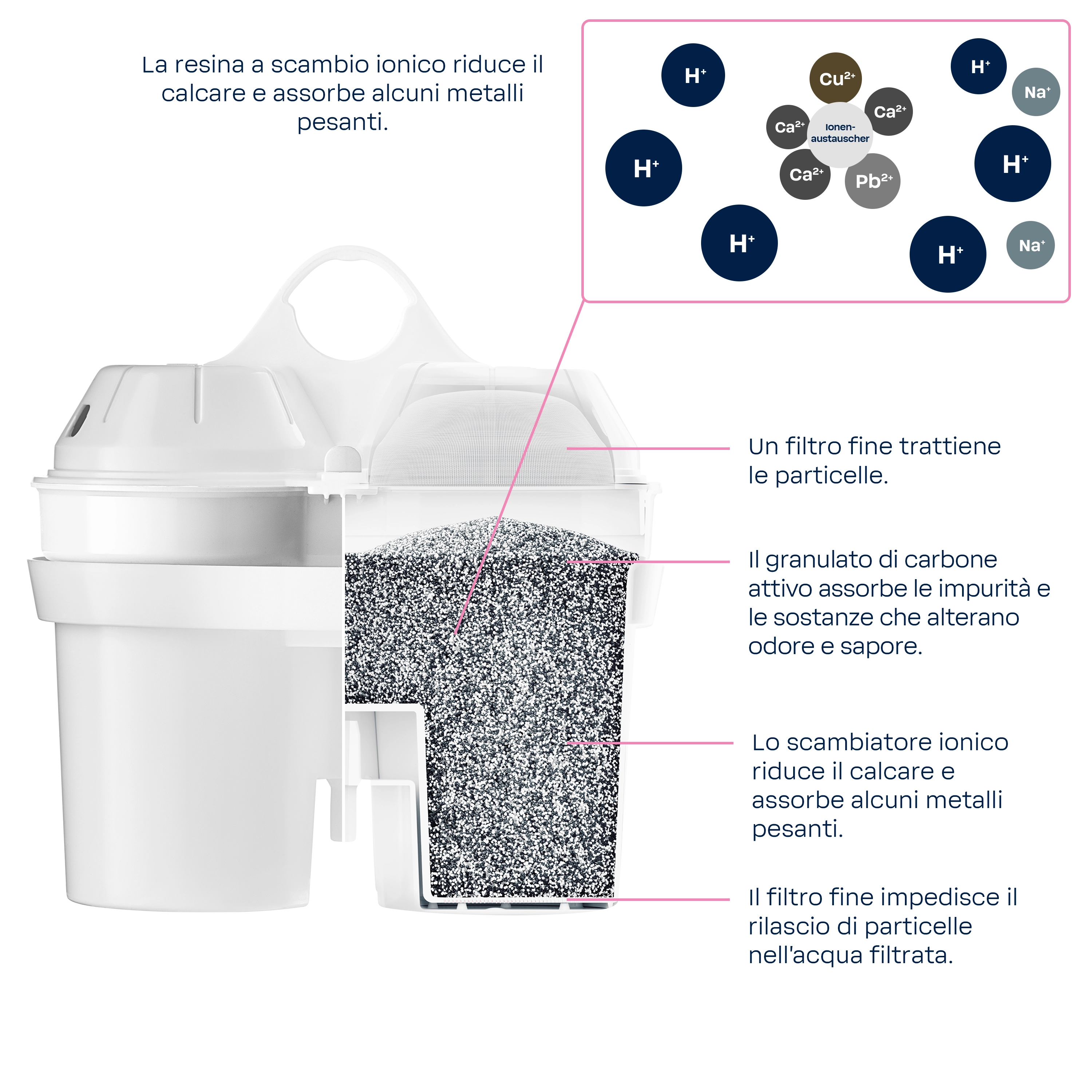 - Eccellente protezione degli elettrodomestici come macchine da caffè e bollitori: riduce il contenuto di calcare nell'acqua
