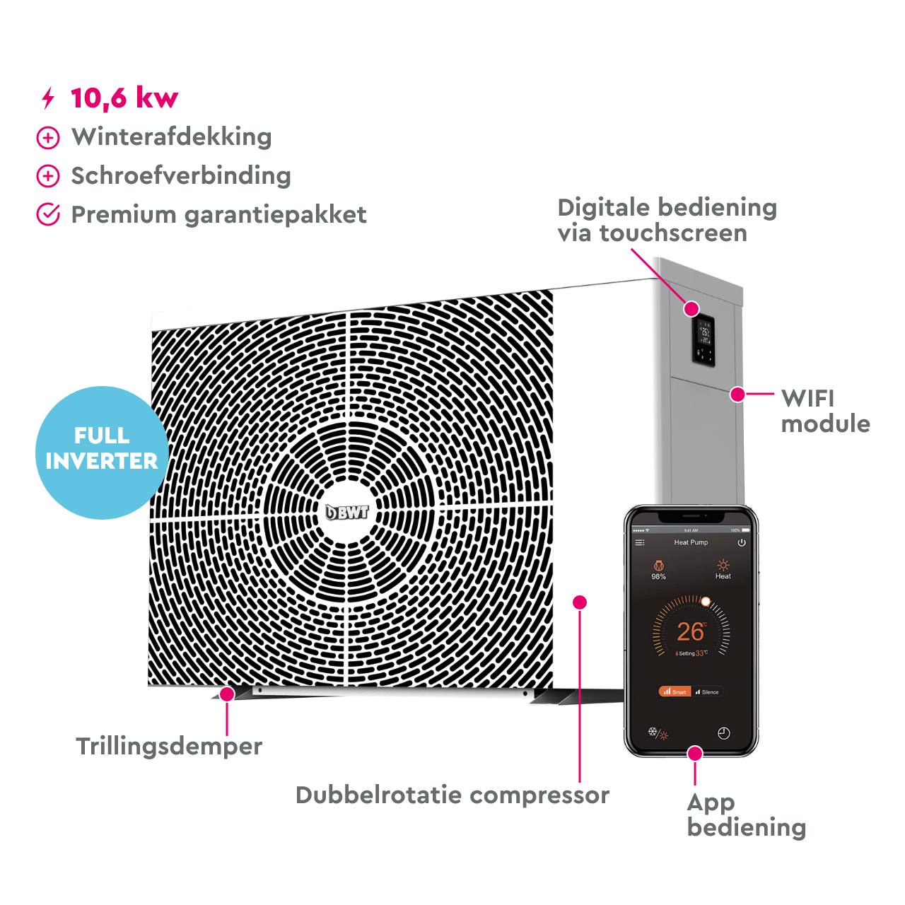 BWT Inverter Horizontale warmtepomp HI-HC 106