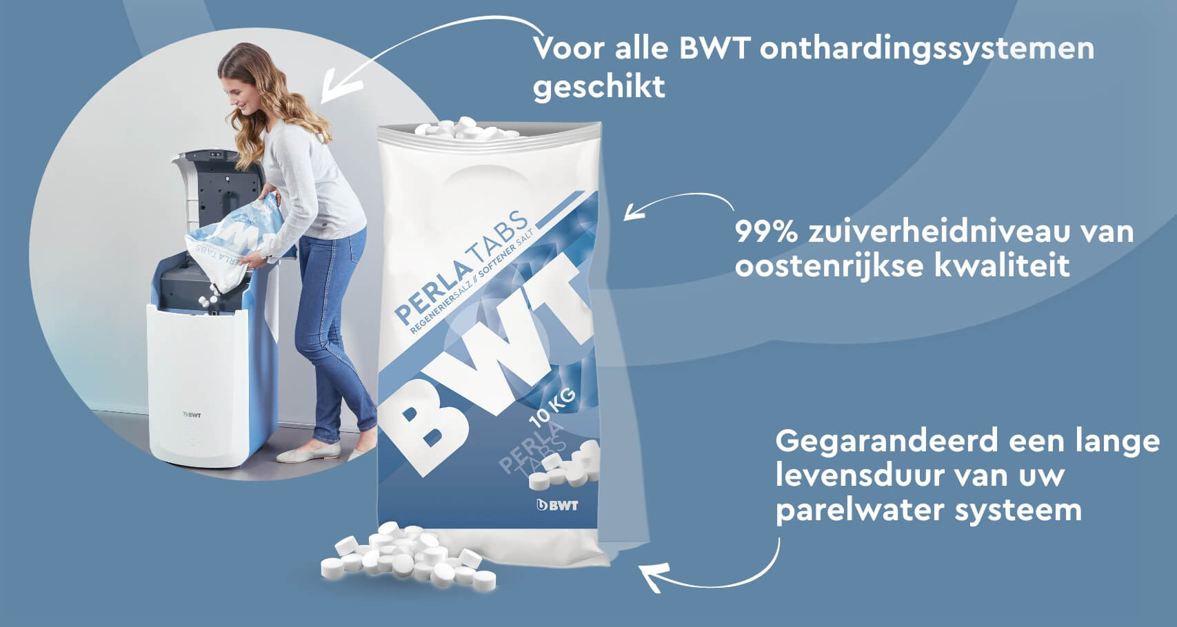 Afhankelijk van welke apparaten u in uw huis heeft geinstalleerd, biedt BWT u natuurlijk ook het juiste verbruiksmateriaal voor uw huissysteem aan. BWT Sanitabs, Zouttabletten of regeneratiezout kunnen heel eenvoudig online nabesteld worden.